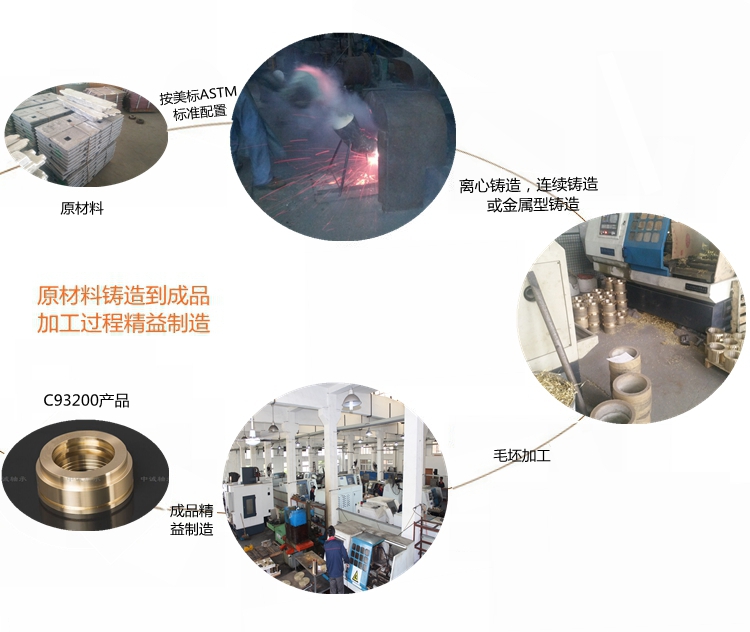 本產品實行ASTM標準………………………………………………… 根據(jù)客戶產品需求我們提供的鑄造方式有:離心鑄造,連續(xù)鑄造和金屬型鑄造。…………………………………………………………… 牌號C93200合金銅化學成分:Cu81-85 Sn6.3-7.5 Pb6-8 Zn2-4 Fe0.2 Al0.005 Si0.005 Ni1 Sb0.35 P1.5 S0.08