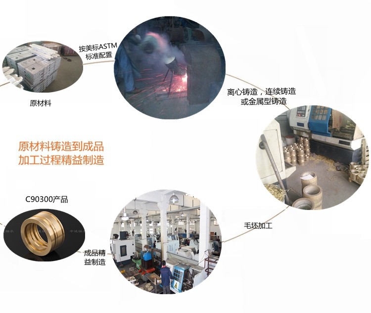 本產(chǎn)品實(shí)行ASTM標(biāo)準(zhǔn)………………………………………………… 根據(jù)客戶產(chǎn)品需求我們提供的鑄造方式有:離心鑄造,連續(xù)鑄造和金屬型鑄造?!?牌號(hào)C90300合金銅化學(xué)成分:Cu86-89 Sn7.5-9 Pb0.3 Zn3-5 Fe0.2 Al0.005 Si0.005 Ni1 Sb0.2 P1.5 S0.05…………對(duì)比國(guó)內(nèi)相近牌號(hào):ZCuSn8Zn4