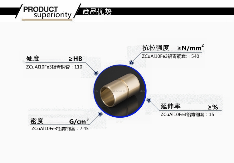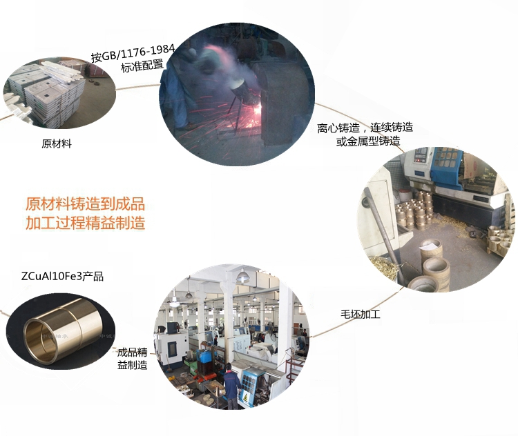 本產品實行GB標準………………………………………………… 根據客戶產品需求我們提供的鑄造方式有:離心鑄造,連續(xù)鑄造和金屬型鑄造?!?牌號ZCuAl10Fe3合金銅化學成分:Cu余量 Sn0.3 Pb0.2 Zn0.4 Fe2-4 Al8.5-11 Mn1 Si0.2 Ni3