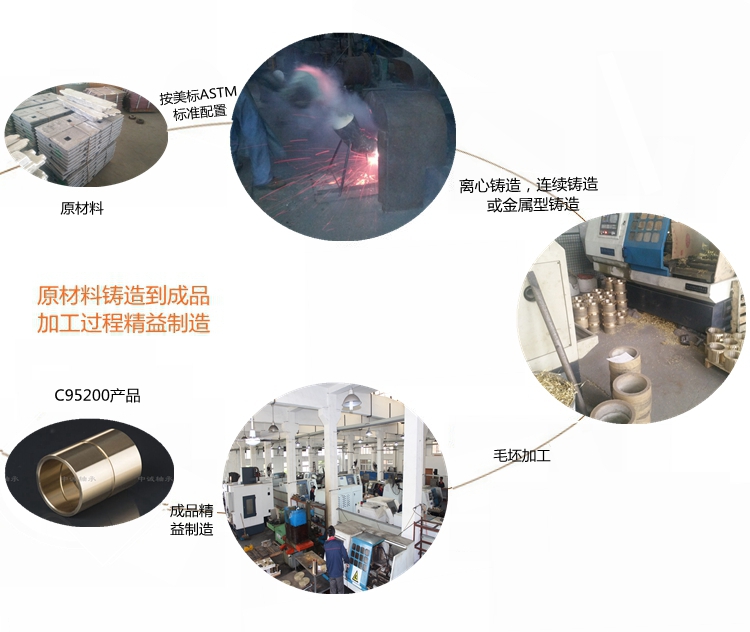 本產品實行ASTM標準………………………………………………… 根據客戶產品需求我們提供的鑄造方式有:離心鑄造,連續(xù)鑄造和金屬型鑄造?!?牌號C95200合金銅化學成分:Cu≥86 Fe2.5-4 Al8.5-9.5…………對比國內相近牌號:ZCuAl10Fe3
