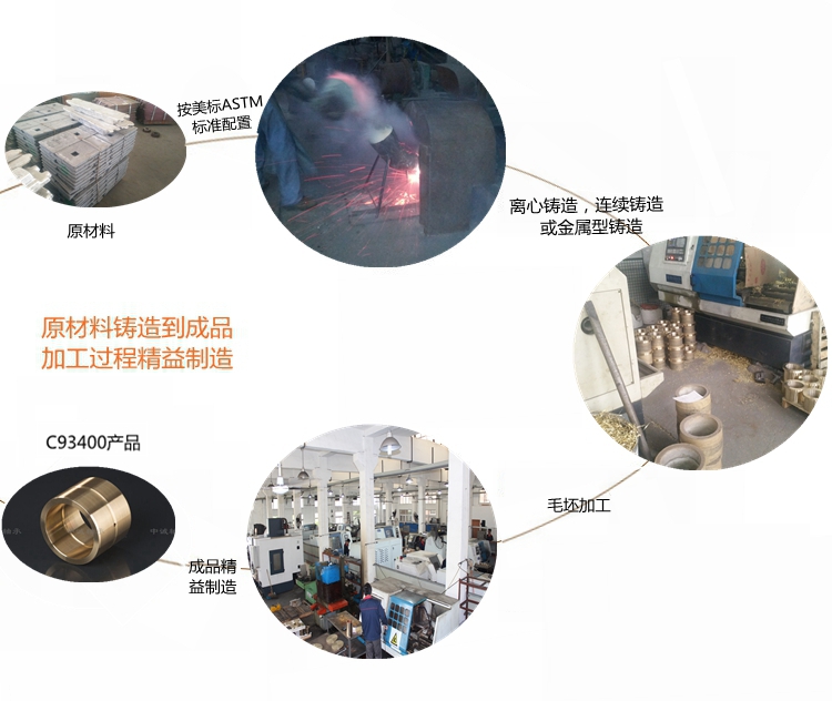 本產(chǎn)品實行ASTM標(biāo)準(zhǔn)………………………………………………… 根據(jù)客戶產(chǎn)品需求我們提供的鑄造方式有:離心鑄造,連續(xù)鑄造和金屬型鑄造?!?牌號C93400合金銅化學(xué)成分:Cu82-85 Sn7-9 Pb7-9 Zn0.8 Fe0.2 Al0.005 Si0.005 Ni1 Sb0.05 P1.5 S0.08